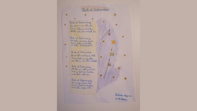„Laterne, Laterne“ și “Ich geh’ mit meiner Laterne”, sunt cântecele, care în mod normal erau intonate, de către elevii școlii noaste, la Marșul Lamioanelor. De data aceasta acest marș a fost anulat, totuși am găsit o alternativă.